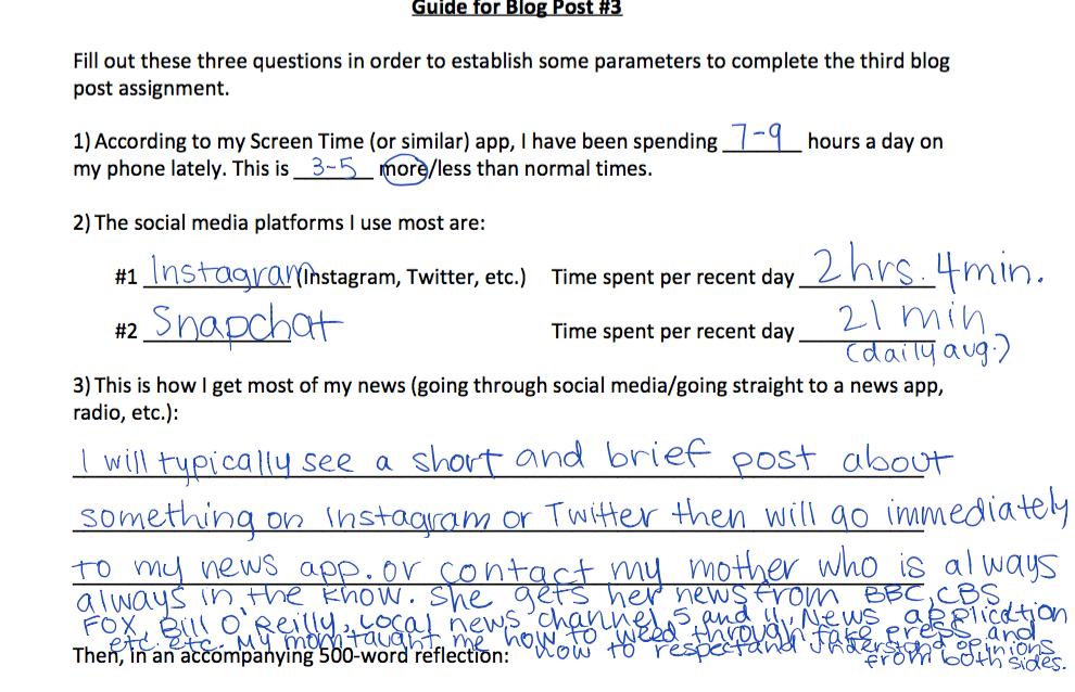 I personally feel that I am very up-to-date with a lot of the facts that are being informed through the media. I know how to properly fact check and find if an article or a post and/or the person who posted it is credible or not. This then usually ends up in long and strenuous talks with my mom about how and why things are happening the way they are and if said information is true or not. This entire process has been very eye-opening I would say. As this very scary thing is erupting all over the world I can’t help but also notice the unity our nation has all participated in throughout this lockdown. People staying inside their homes and restricting themselves from their daily necessary routines like school or work to keep the spread of this virus from happening as best as possible, although sad and financially frightening, is extremely comforting. However, what leaves me angrier than anything are the people that are not taking this as seriously as everyone else is and remains to participate in group-like settings. I am very stressed and anxious when I remember that I am basically stuck inside my house and potentially could be for many more months to come.